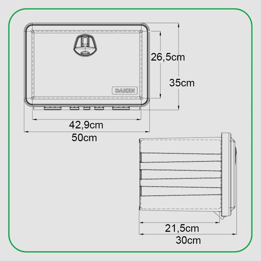 ✅ Якісний ящик для інструментів серії JUST від італійського виробника DAKEN. Компактна модель 500, яка використовується для напівпричепів, евакуаторів та інших транспортних засобів доставки.