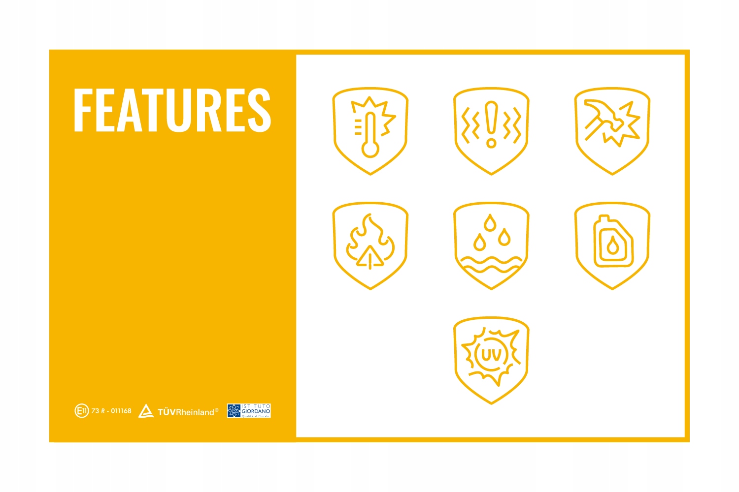 - Матеріал – поліпропілен, вогнестійкий нейлон; з високою стійкістю до води, рідин, масел, палива, УФ-променів, високих і низьких температур.