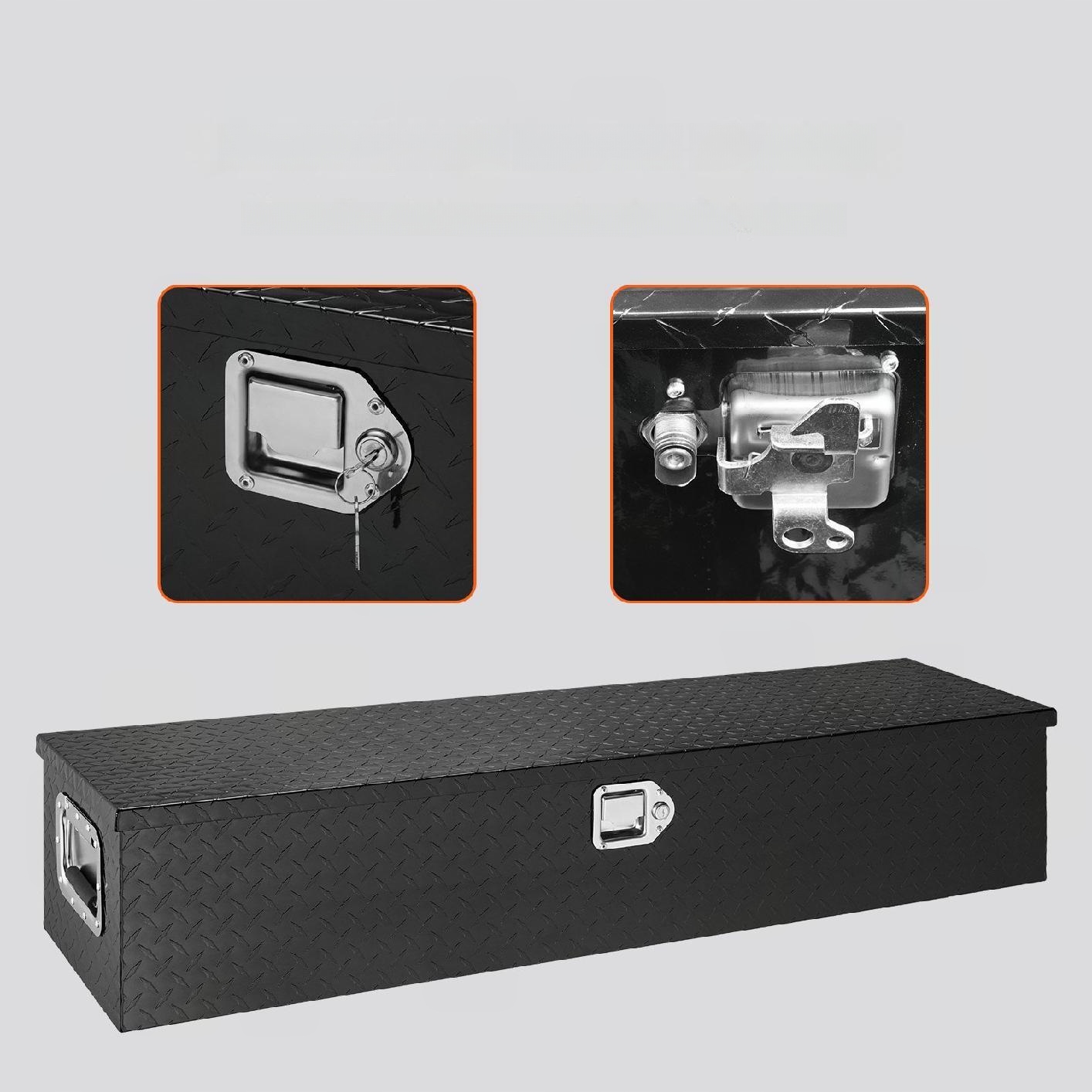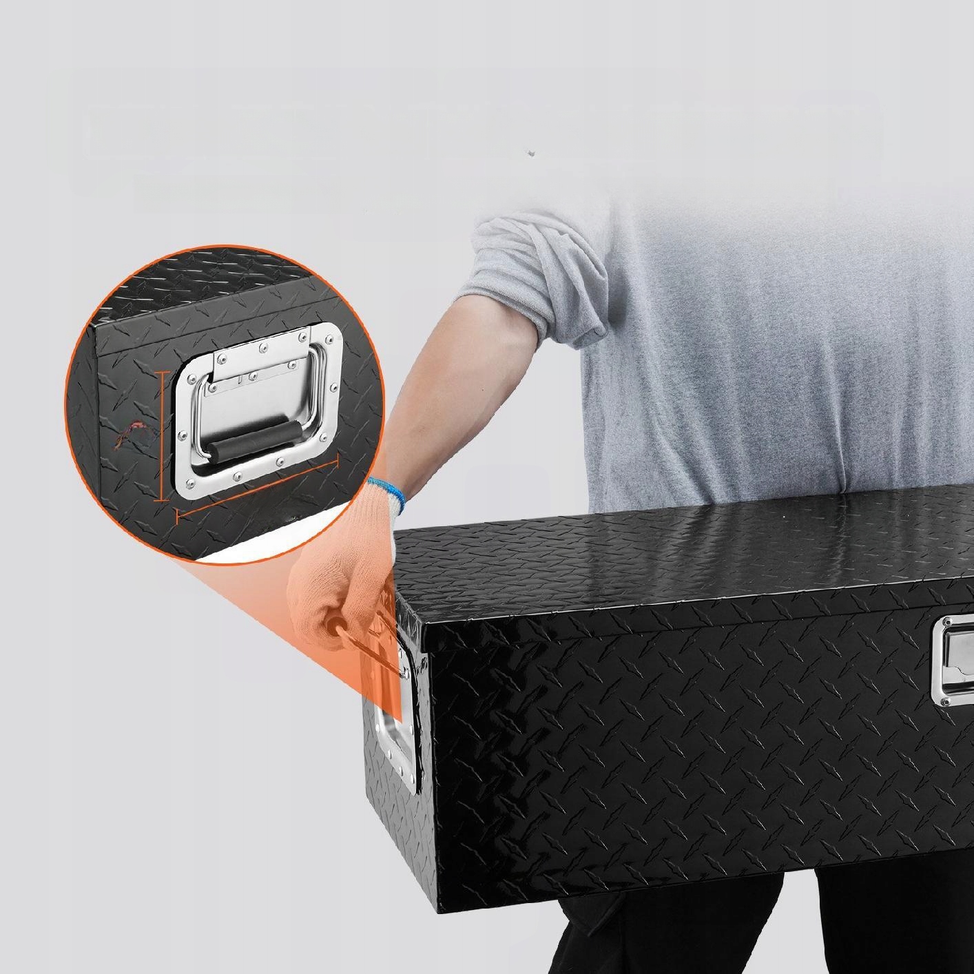 Ящик для інструментів, виготовлений з легкого, міцного алюмінієвого сплаву, оснащений характерним ромбоподібним малюнком і подвійним порошковим покриттям, яке ефективно захищає від іржі, корозії та стирання. Суцільні, посилені кути захищають кути коробки під час транспортування та повсякденного використання, забезпечуючи довговічність виробу.