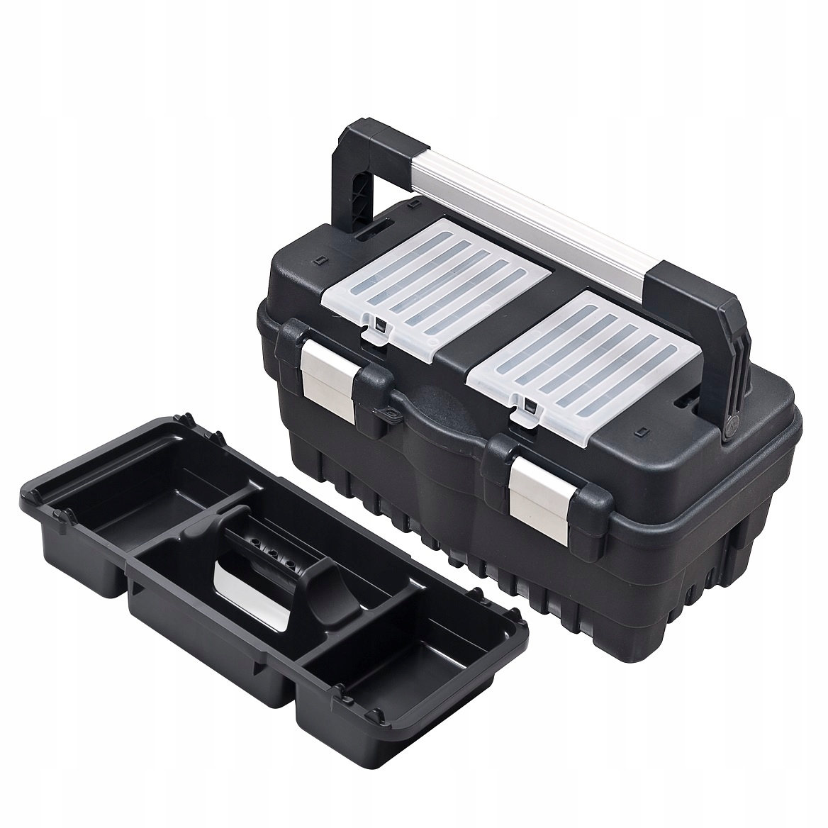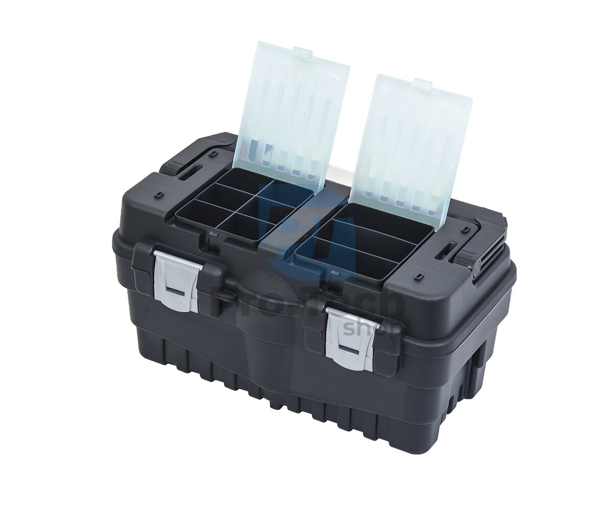 Formula S 500 Carbo Plus — це коробка, призначена для домашніх ентузіастів і професіоналів, які цінують порядок у своїх інструментах. Алюмінієва ручка дозволяє зручно переносити коробку, а в відкритій формі служить опорою для кришки. Завдяки цьому після відкриття кришку коробки також можна використовувати як місце для зберігання. Ящик оснащений пластиковим піддоном з місцем для зберігання біт і свердел. Інструмент захищений від крадіжки алюмінієвими фіксаторами і отвором для навісного замка. Чохол містить два органайзери з полікарбонатною кришкою, які дозволяють зберігати дрібні предмети.