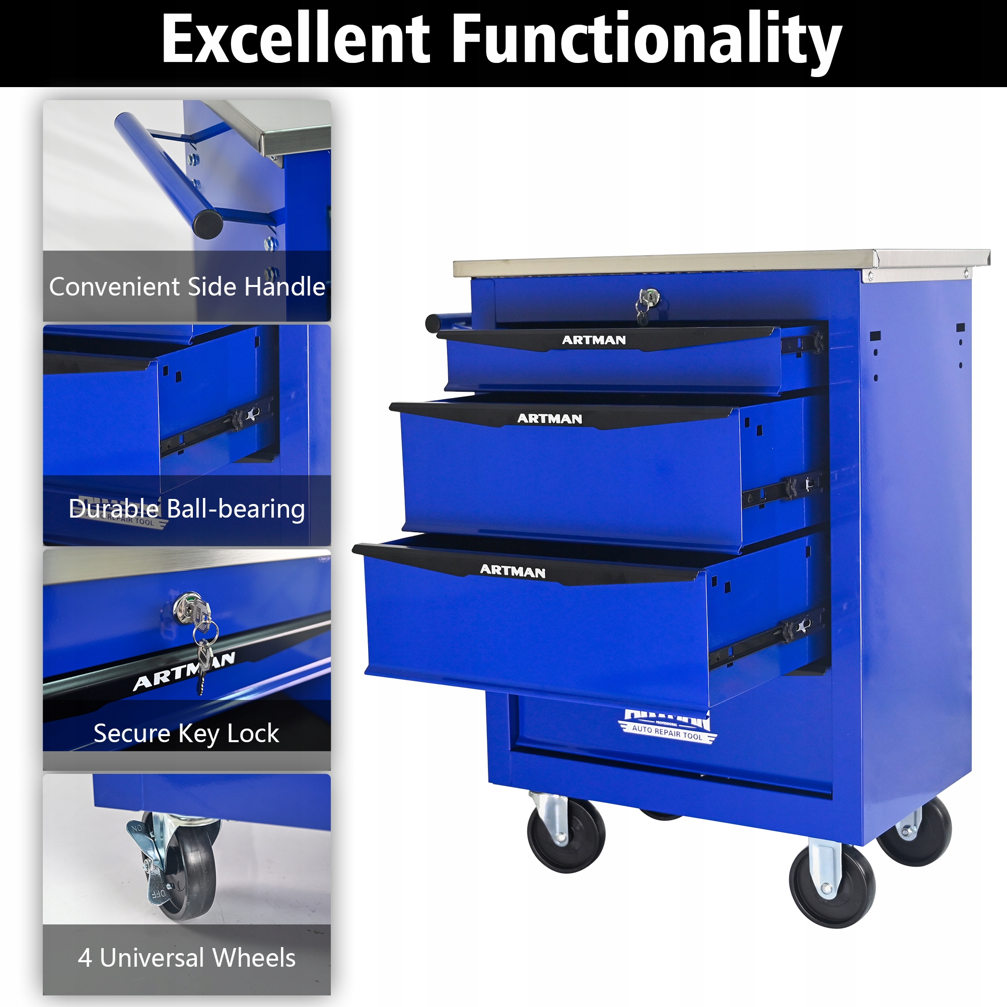 【Artman】 Як ідеальний органайзер для скрині з інструментами, він має 4 шухляди з плавним висуванням із центральним замком. Ця система надійно зберігає весь вміст, захищаючи ваші цінні інструменти від втрати чи несанкціонованого доступу з легкістю.