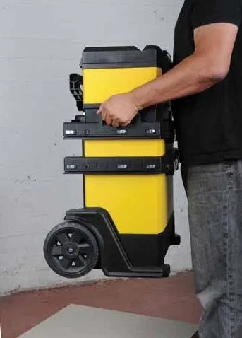 Візок для майстерні 1-96-621 Stanley полегшить зберігання та транспортування інструментів і аксесуарів. Це пропозиція для мобільних професіоналів. Конструкцію майстерні Стенлі можна розділити на три сегменти: знімний ящик з лотком для інструментів, глибокий ящик на кулькових напрямних і висувний металевий контейнер для великих і важких інструментів. Обладнання кожного сегмента можна налаштувати відповідно до ваших потреб.
