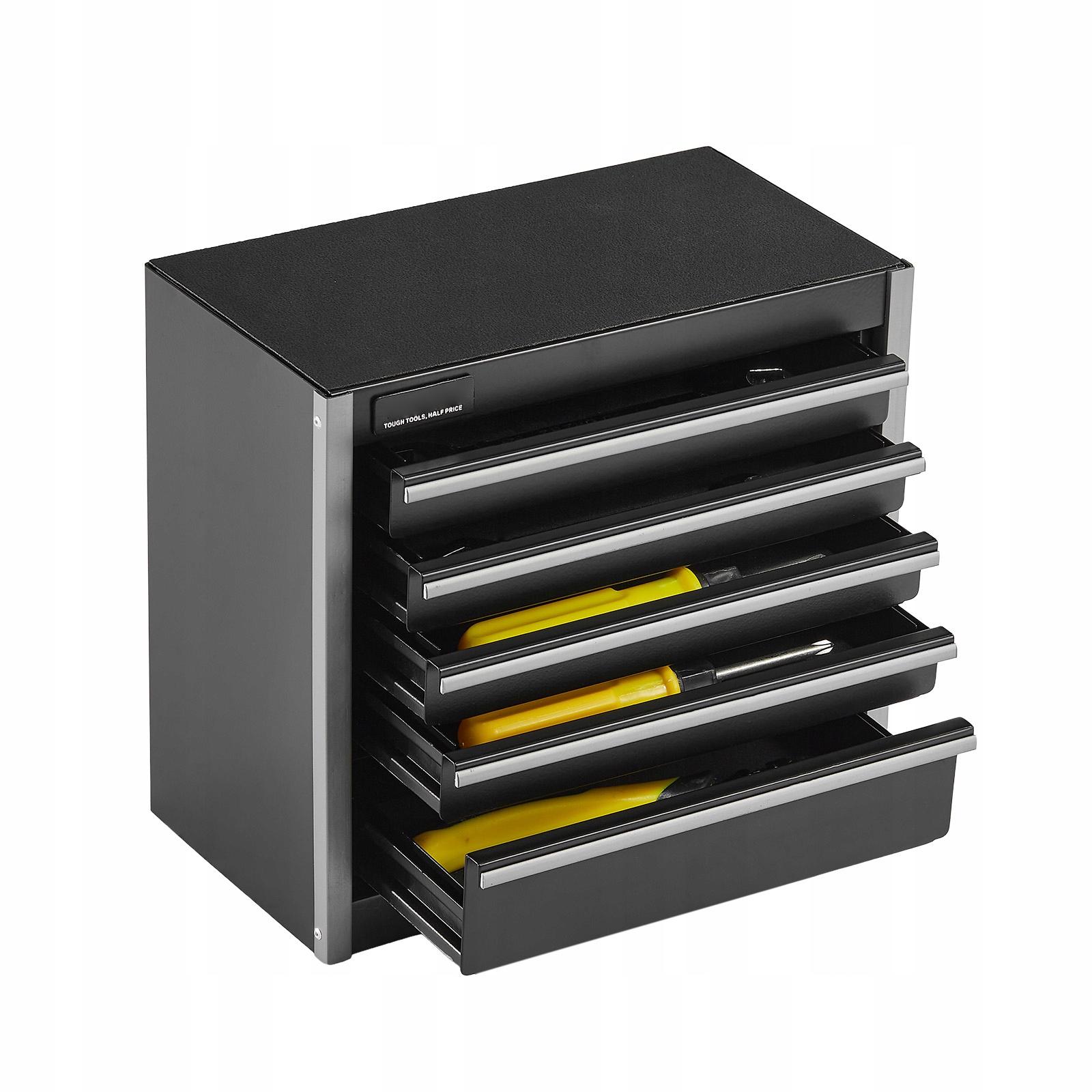 Цей 8,6-дюймовий сталевий ящик для інструментів ідеально підходить для зберігання на столі. Завдяки п’яти внутрішнім висувним ящикам він ідеально підходить не тільки для зберігання дрібних інструментів, але також може використовуватися для розміщення косметики, прикрас та інших особистих речей. Шухляди з плавним ходом забезпечують легкий доступ до предметів і покращують загальну взаємодію з користувачем.
