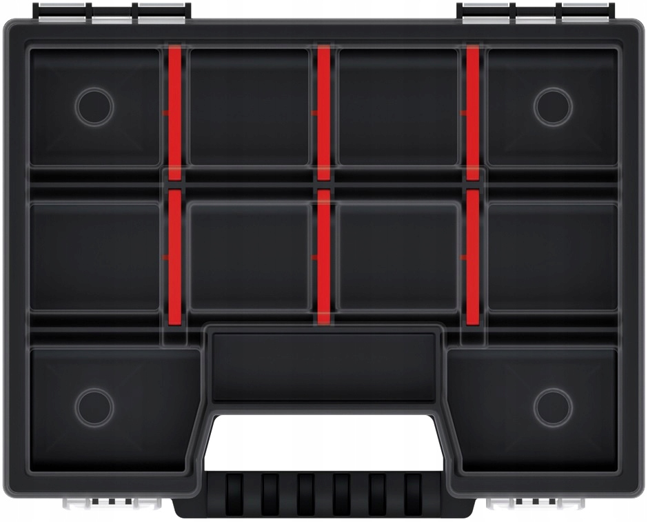Універсальні органайзери з регульованими відділеннями - зручне рішення, яке дозволяє регулювати розмір і кількість відділень відповідно до ваших потреб. Прозора кришка дозволяє перевірити, що всередині, не відкриваючи її, а завдяки міцна ручка, ви можете використовувати органайзер без необхідності переміщення в інше місце.