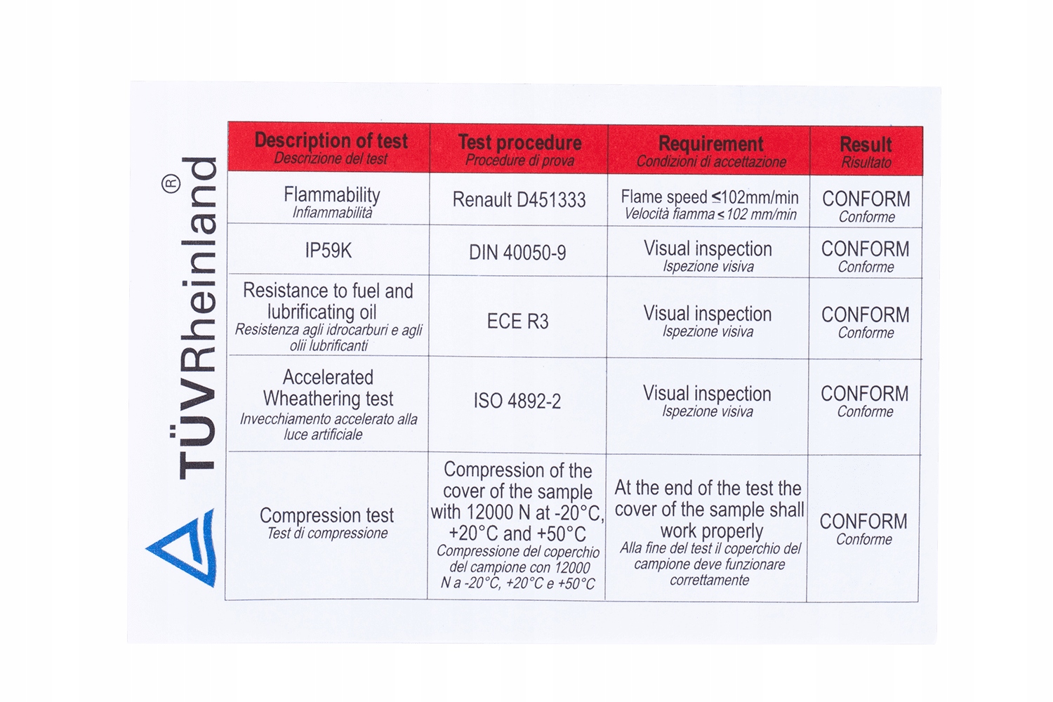 - Стійкість до пилу та води, мастил, палива, рідин, УФ-променів