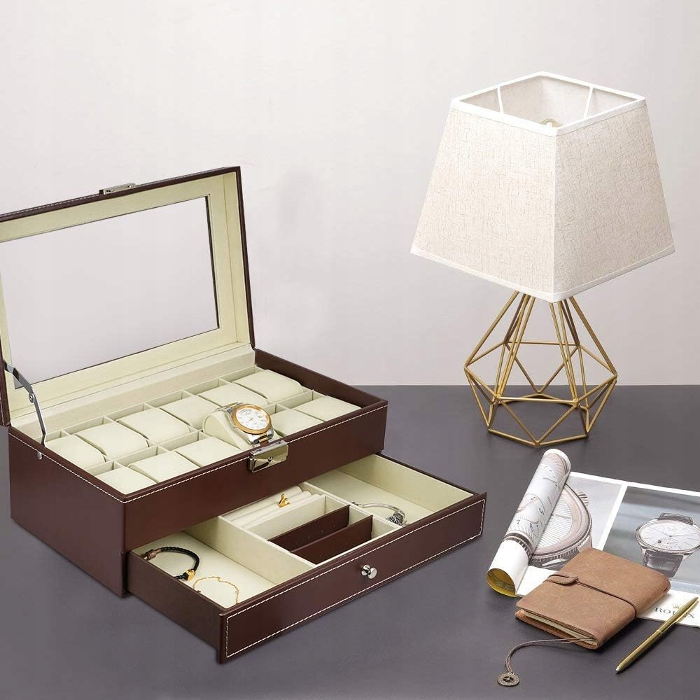 *12 великих відсіків - кожна подушка зберігає невеликий або великий годинник на місці. Між кришкою та подушками є багато місця для розміщення годинників усіх розмірів.