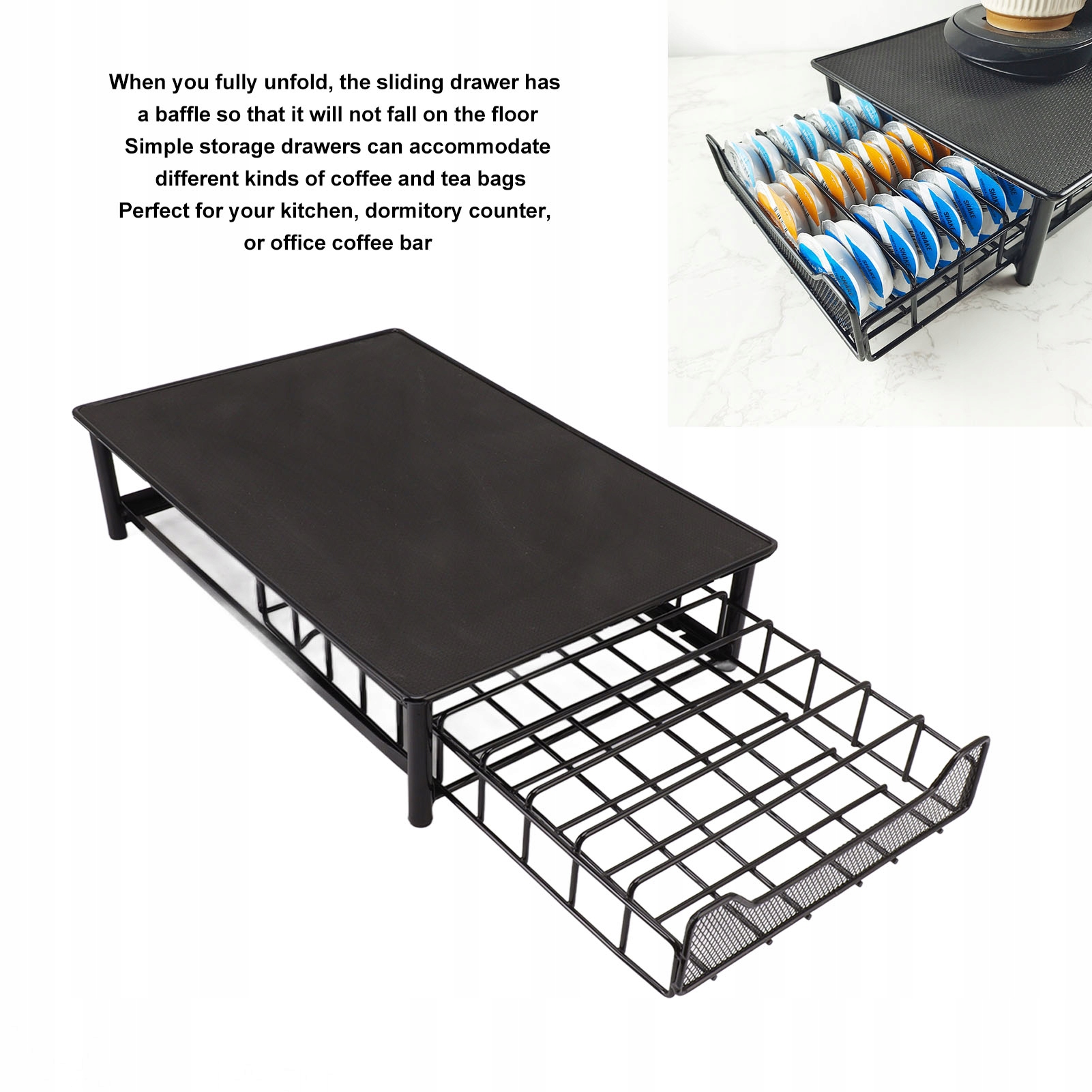 5. Більше місця для зберігання: проста шухляда для зберігання кавових капсул може вмістити різні типи пакетиків кави та чаю, забезпечуючи більше місця для зберігання на вашій кухні та офісній вітальні.
