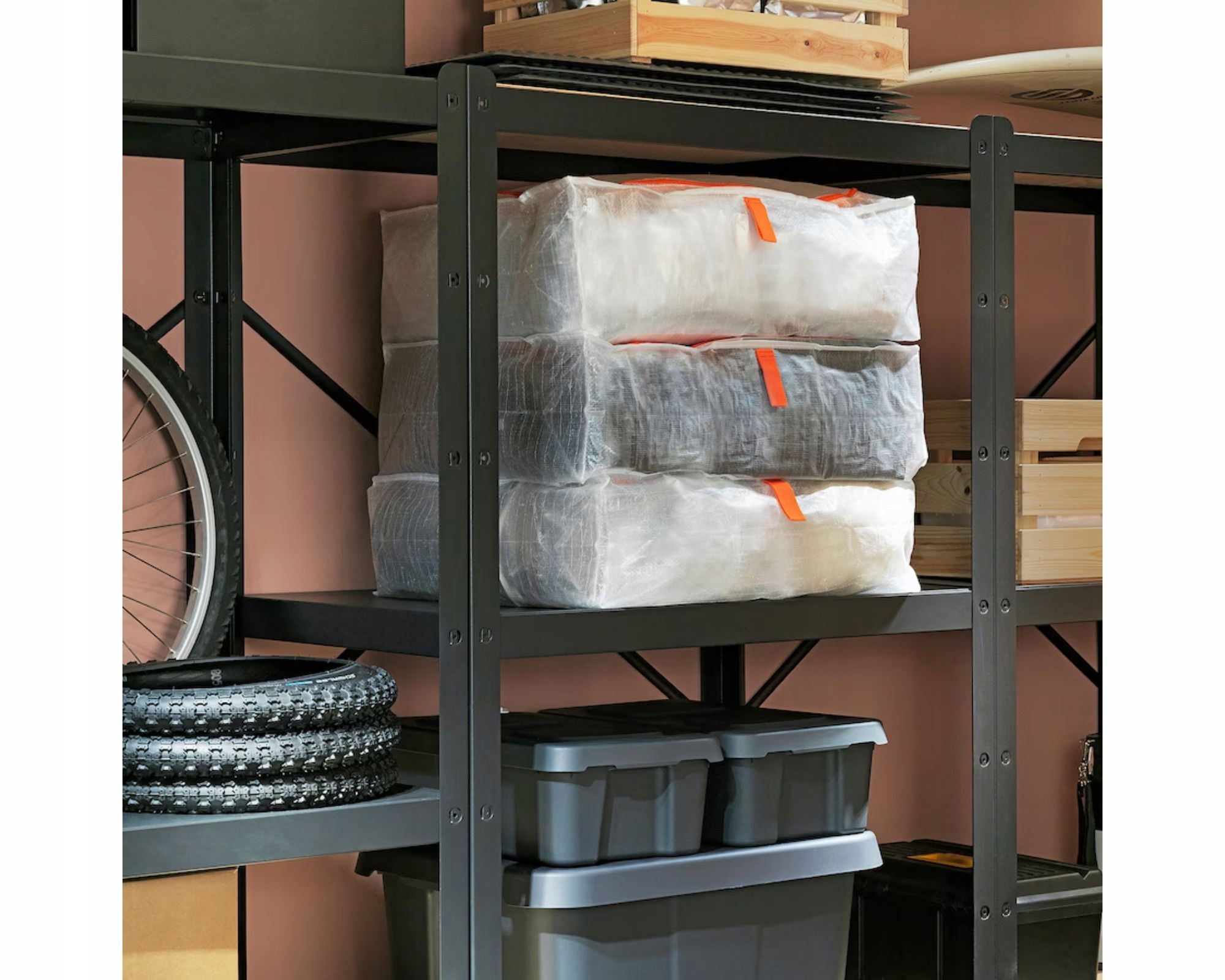 У цьому великому контейнері ви можете безпечно зберігати сезонний одяг або запасні ковдри та подушки, поки вони вам знову не знадобляться. А коли вони порожні, ви можете скласти їх у плоску упаковку.