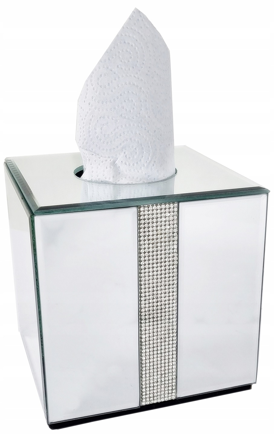 Коробка для серветок з кристалами на передній стінці.Дно контейнера пластикове, всередині оксамитове. Отвір має форму кола.