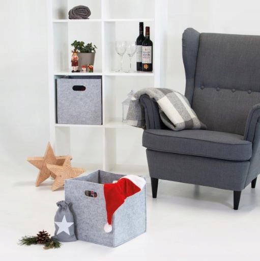 Кошик сірого кольору виготовлений з практичного фетру. Завдяки цьому виріб легко підтримувати в чистоті. Дві ручки з боківі невелика вага дозволяють легко переносити та використовувати контейнер. Крім того, органайзер повністю складається, тому його можна легко зберігати, коли він не використовується. Дизайн у скандинавському стилі ідеально впишеться в будь-який інтер'єр. Контейнер допоможе вам подбати про щоденний порядок і зігріти простір. Ідеально підходить для дитячої кімнати, вітальні або офісу. Ідеально підходить для зберігання іграшок, книг, одягу та всіх видів дрібних аксесуарів.