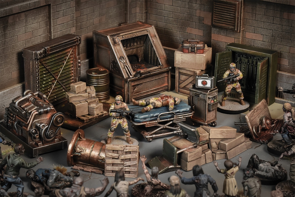 Склади є ідеальним джерелом притулку та запасів після кінця світу. Вони також можуть бути організаторами чого завгодно: від таємних корпоративних змов до незаконної торгівлі зброєю та мафіозних угод. Цей набір включає широкий спектр декорацій для заселення цих брудних місць, включаючи шафку для зброї та піч.