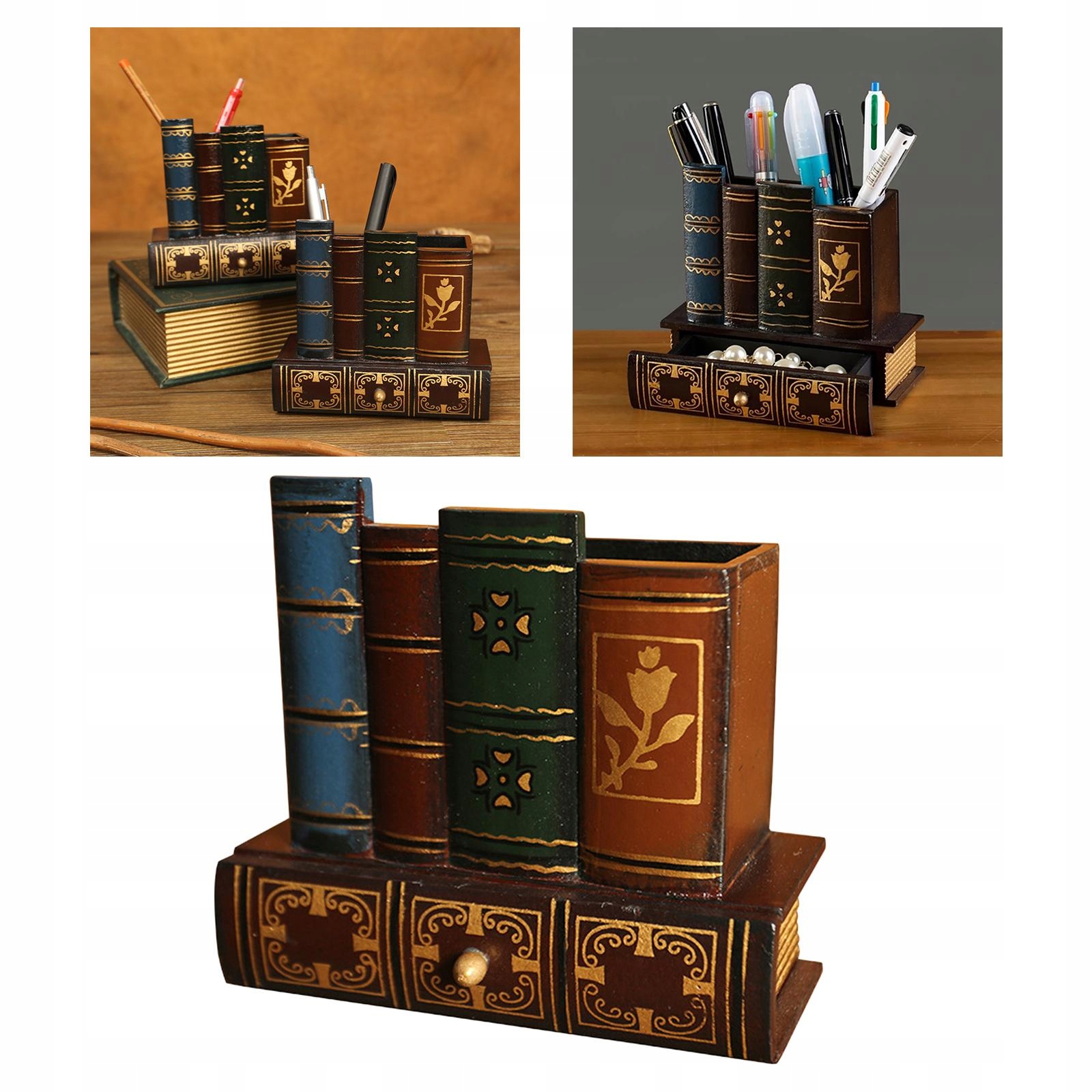 Багатофункціональний настільний органайзер у формі книги в ретро-стилі, коробка для зберігання, тримач для олівців.
