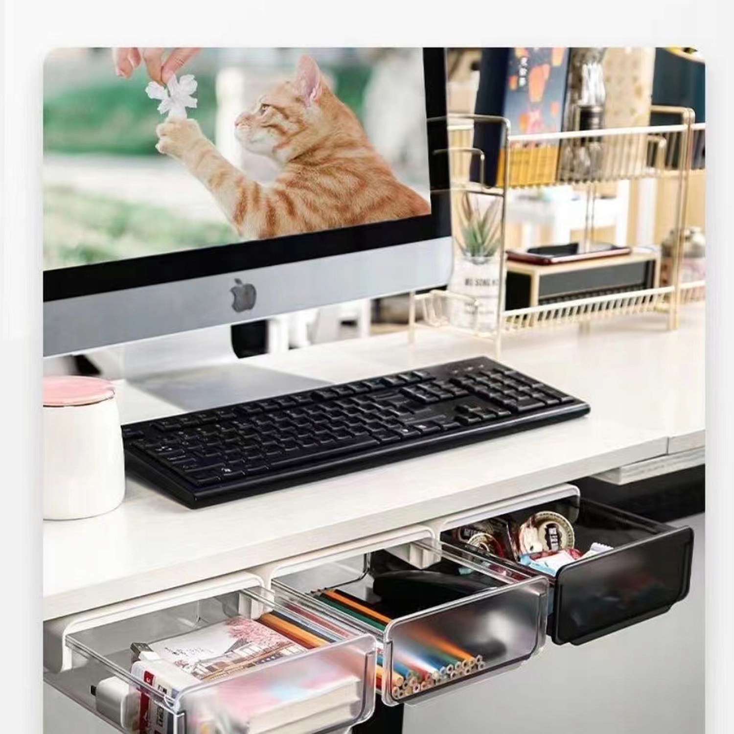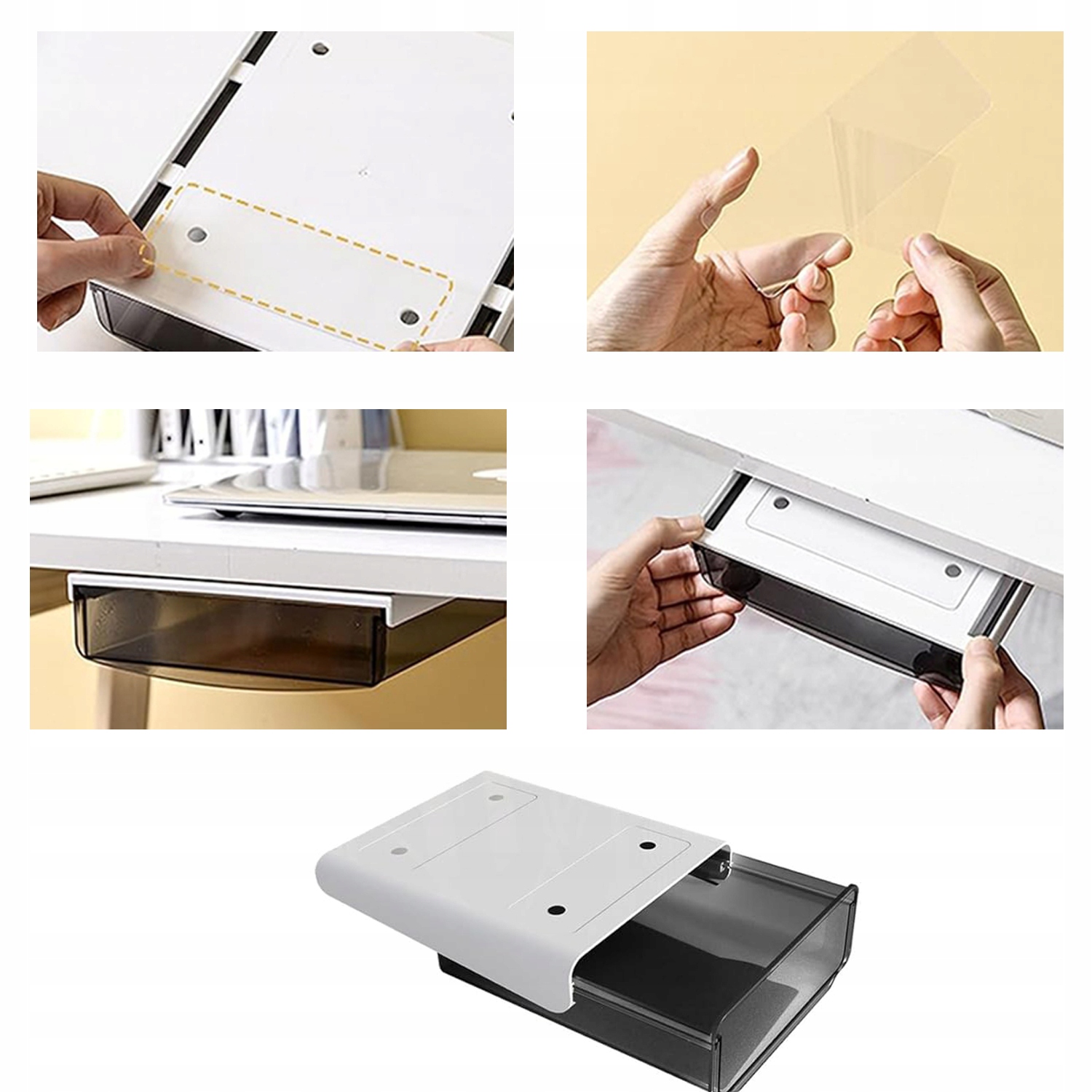 - Цей ящик під столом має вгорі самостійно -адгезивну конструкцію, яка ефективно використовує простір під столом.