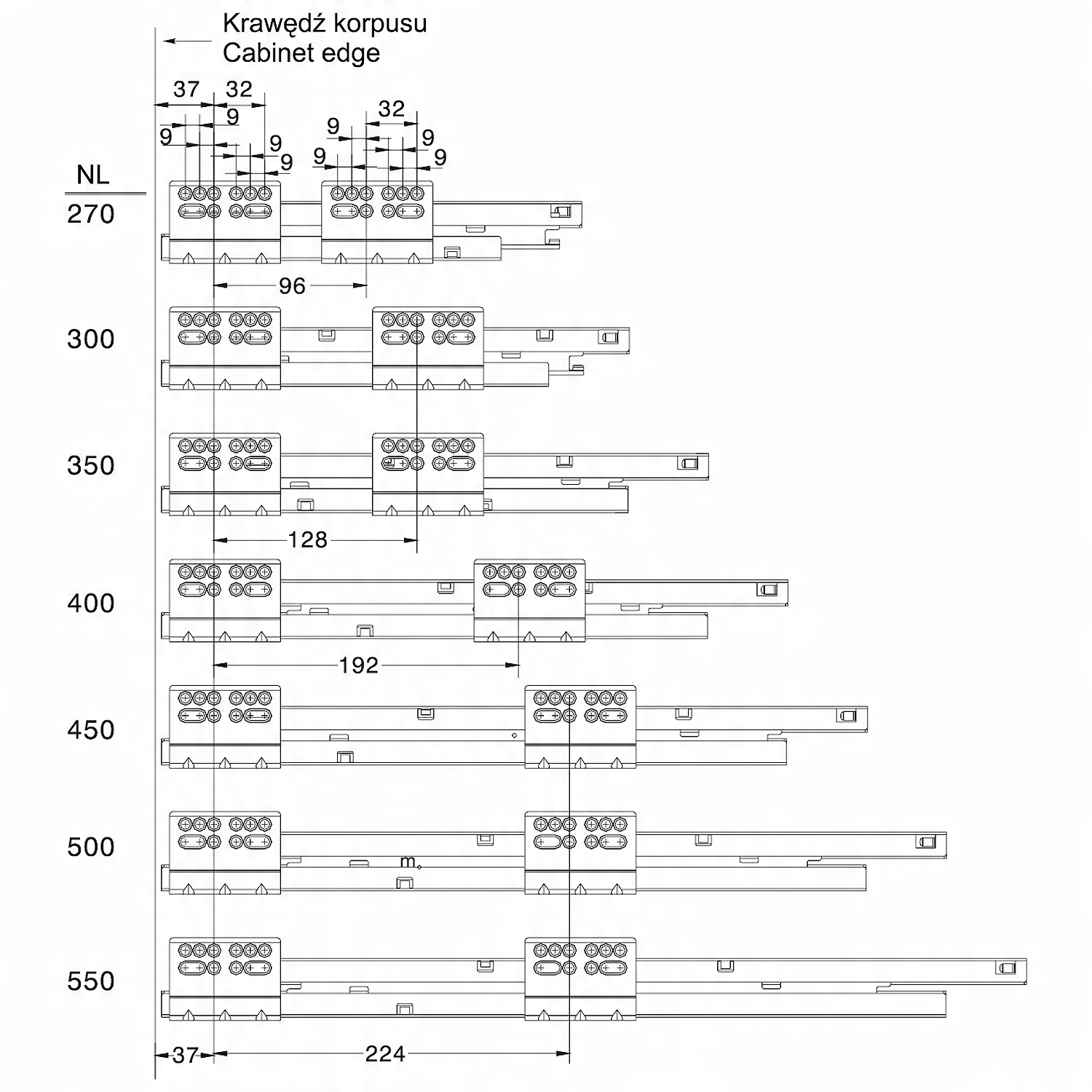 Доступні довжини ящика: L-270, L-300, L-350, L-400, L-450, L-500, L-550. MM