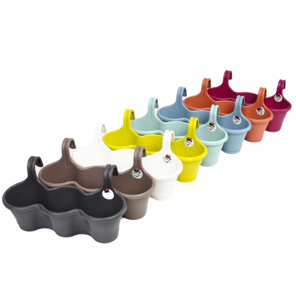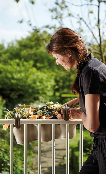 Довгасті вазони ELHO CORSICA TRIO для балконів і балюстрад. Природна форма і легка форма горщиків ідеально поєднується з квітами. Горщик є тонким фоном для висаджених квітів, створюючи враження легкості композиції.