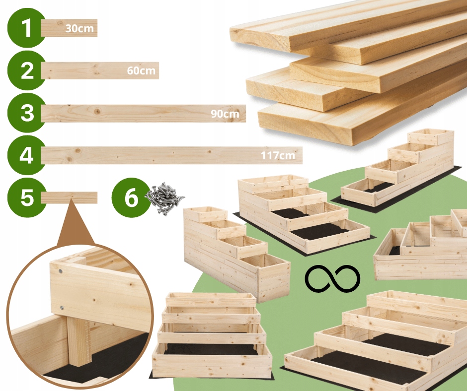 Дерев'яний каскадний ящик для городу - БЕЗКОШТОВНИЙ НАБІР ДЛЯ САДІВНИКА - перегляньте величезну кількість доступних комбінацій безпосередньо від польського виробника!