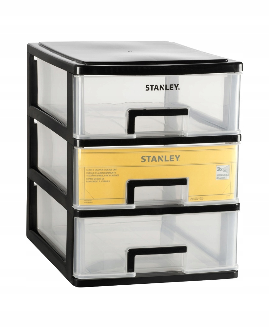 Stanley® Essential L-це 3-джерелова шафа для зберігання, яка допоможе вам організувати невеликі елементи, такі як гвинти, гайки, колодки та аксесуари. Завдяки прозорі ящики Ви можете легко ідентифікувати вміст, а знімні ящики із замками надають зручний доступ до збережених предметів.