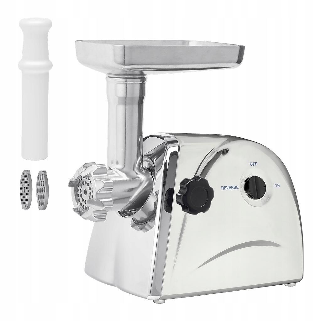 Машина оснащена ножем з нержавіючої сталі, що дозволяє ефективно шліфувати м'ясо та практичну алюмінієву годівницю.