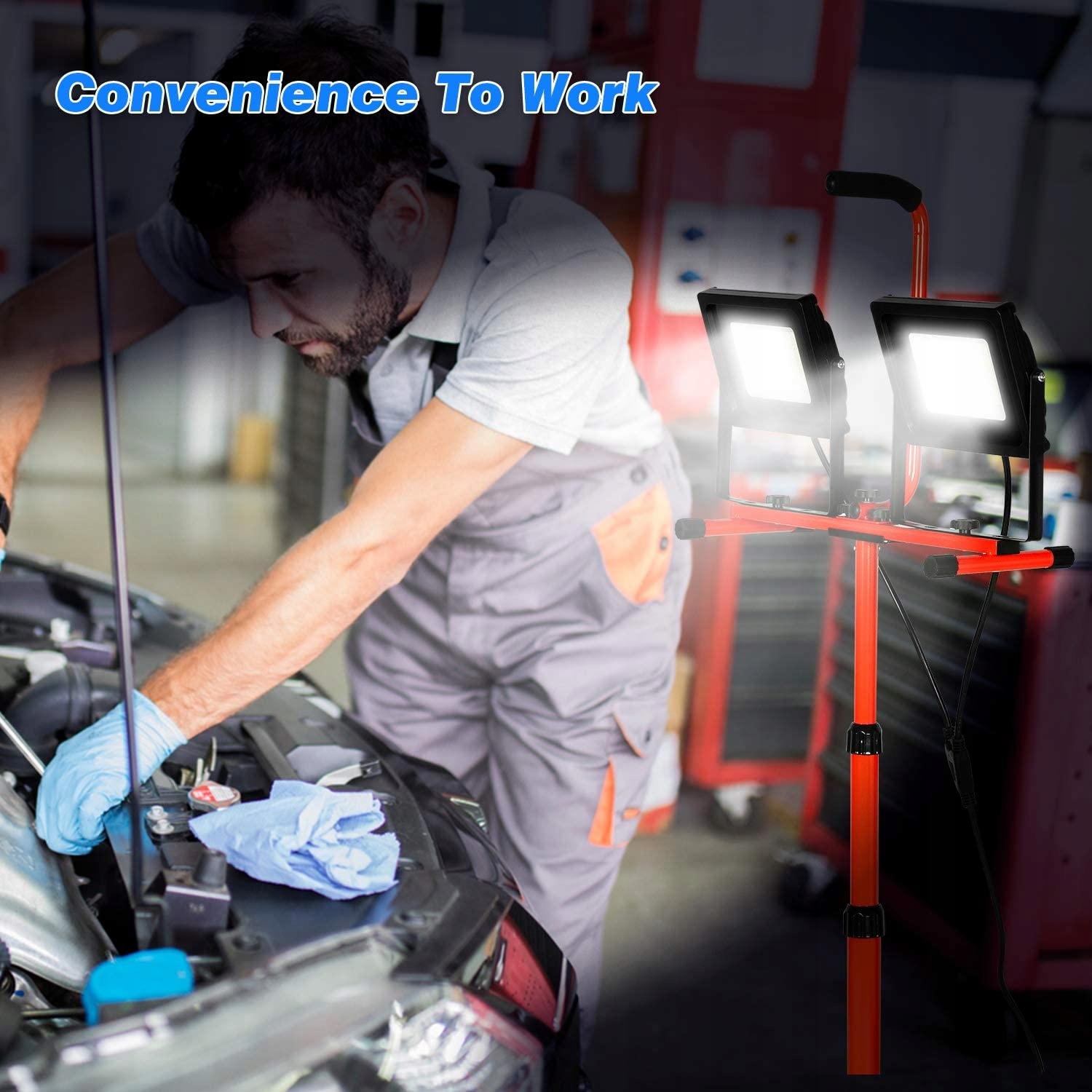 Хороша робоча лампа ніколи не повинна бути лампою для обігріву. Після оновлення світлодіодної лампи бус. це роблять робочі фари hychika. Споживана потужність 2*60w -120W практично вся перетворюється на світло. Майже немає тепла, лише яскраве біле світло 6500 К. 【Гнучка робоча лампа з підставкою】 Обидві головки лампи можна повертати на 360° по горизонталі та на 270° по вертикалі. Навіть ви можете легко зняти головку лампи для використання. Hychika докладає всіх зусиль, щоб світло досягало кожного куточка. 【Стабільний робочий світильник для штатива】 Кронштейн для штатива виготовлено з металевого матеріалу, а виробничий процес покращено. Володіє хорошою стійкістю. Висоту освітлення штатива можна регулювати від 37,4 дюйма до 76,8 дюйма, регулюючи штатив і пряму ручку. Налаштуйте кут освітлення в усіх напрямках із тривимірного простору.