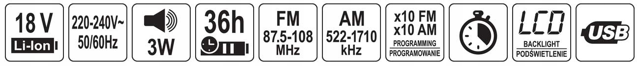 Портативне радіо Yato , ідеально підходить для майстерні та для будівництва. Пристрій інтуїтивно зрозумілий для використання та стійкий до пошкоджень . М'яка механіка кнопки добре захищає від проникнення пилу. РК -дисплей полегшує програмування радіостанцій у пам'яті. 4
