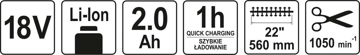 ідеально підходить для обрізки та формування чагарників та живоплотів. Оснащений двоспальною ріжучою смужкою з лазерними ножами та бампером, захищаючи від відображення при різанні близько до стін та ґрунту. Двоє -ступінь перемикання запобігає випадковому запуску пристрою. Це дозволяє розрізати гілки та плазуни товщиною до 16 мм і безперервну роботу протягом 45 хвилин на одному акумуляторі заряджається 2 ах.
