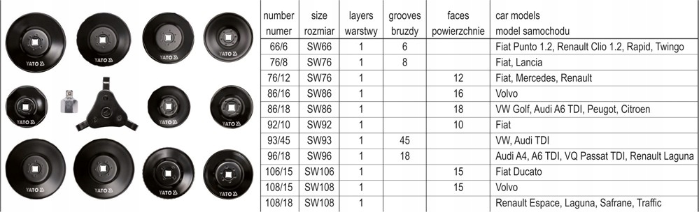 YATO KLUCZE NASADOWE FILTRÓW OLEJU 13 EL YT-0594