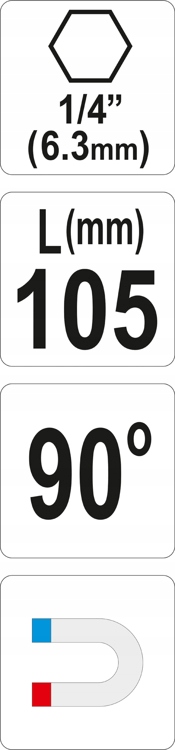 Кутова викрутка марки YATO, магнітна, для біт 1/4".