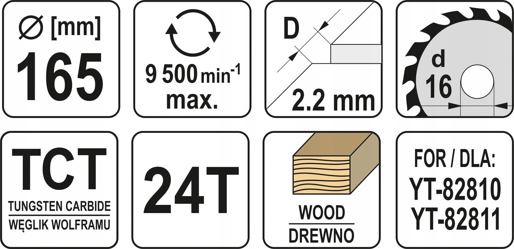 YATO TARCZA WIDIOWA ZĘBY Z WĘGLIKA WOLFRAMU DO DREWNA 165X16MM 24T YT-60590