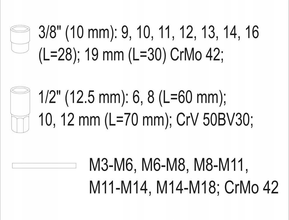 - розмір приводу [дюйм]: 1/2 "; 3/8"