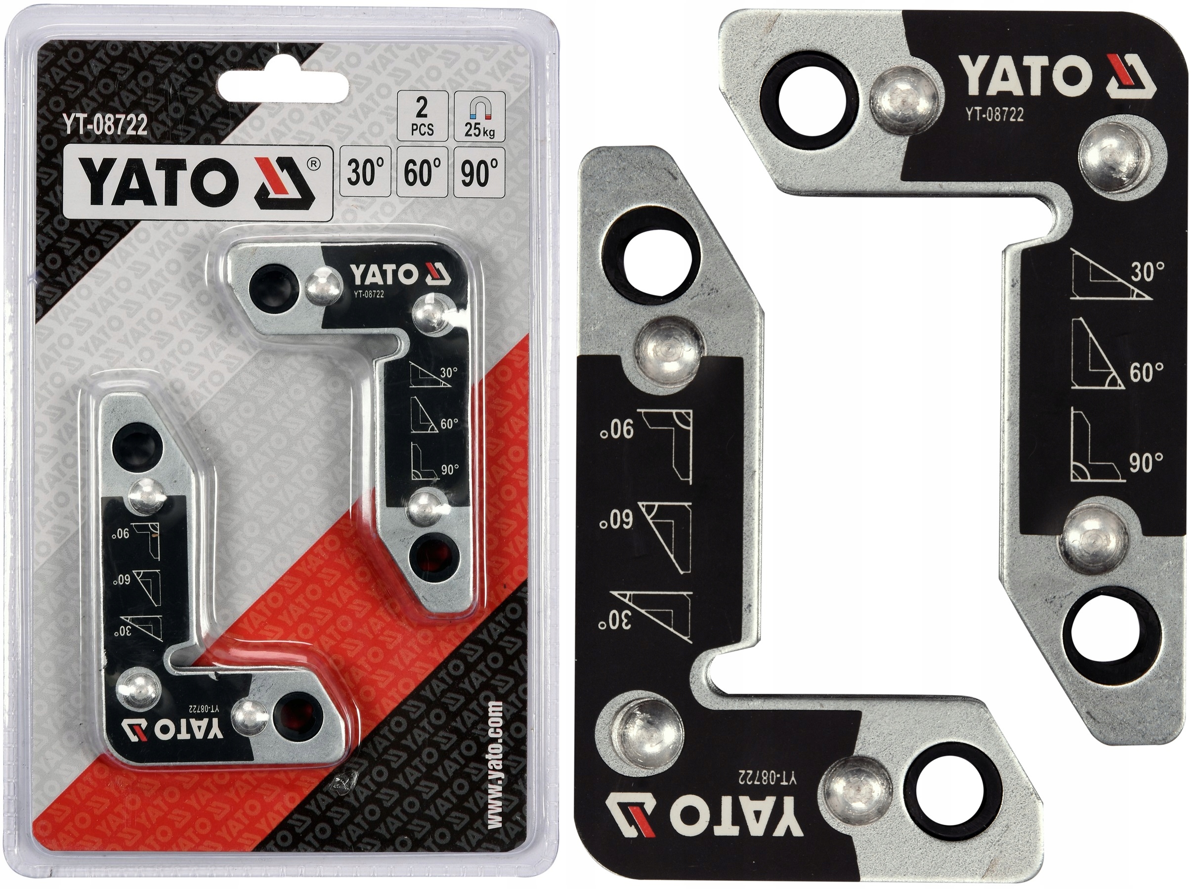 Набір з 2 магнітних кутників, які використовуються для зварювальних і монтажних робіт на різних елементах: листи, з’єднувачі, бруски, профілі, труби тощо. Вони забезпечують надійне утримання зварних елементів завдяки сильним магнітам.