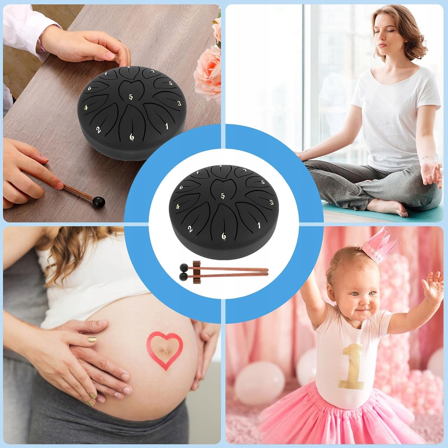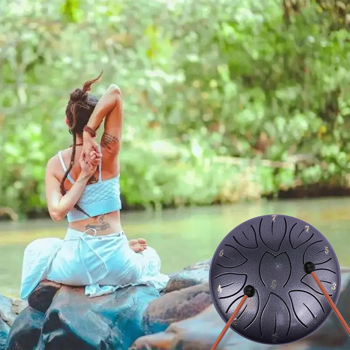 Відкрийте для себе заспокійливий світ звуків за допомогою нашого сталевого барабана з 11 ідеально налаштованими нотами. Цей компактний і надзвичайно міцний інструмент дозволяє створювати чисті, небесні звуки, які мають седативні та медитативні властивості. Ідеальний спосіб заспокоїтись, відпочити та відірватися від повсякденної суєти! Барабан також буде служити чудовою іграшкою для дітей!