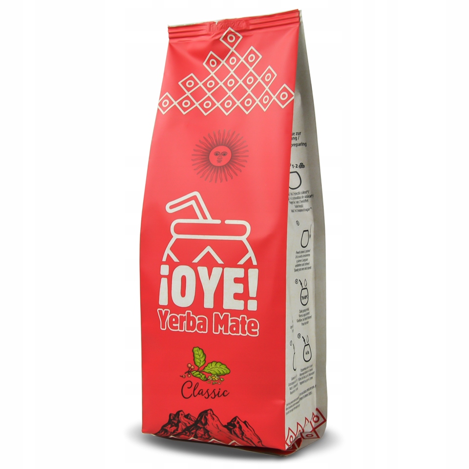 ¡OYE! Класичнийце класичний йерба мате "con palo" (зі стеблами), що походить із природних культур у північній частині Аргентини, в провінції Місьйонес. Це суміш листя та дрібно нарізаних гілочок падуба та невеликої кількості пилу, що дає Yerba Mate ¡OYE! Класичний тонкий і вишуканий смак.