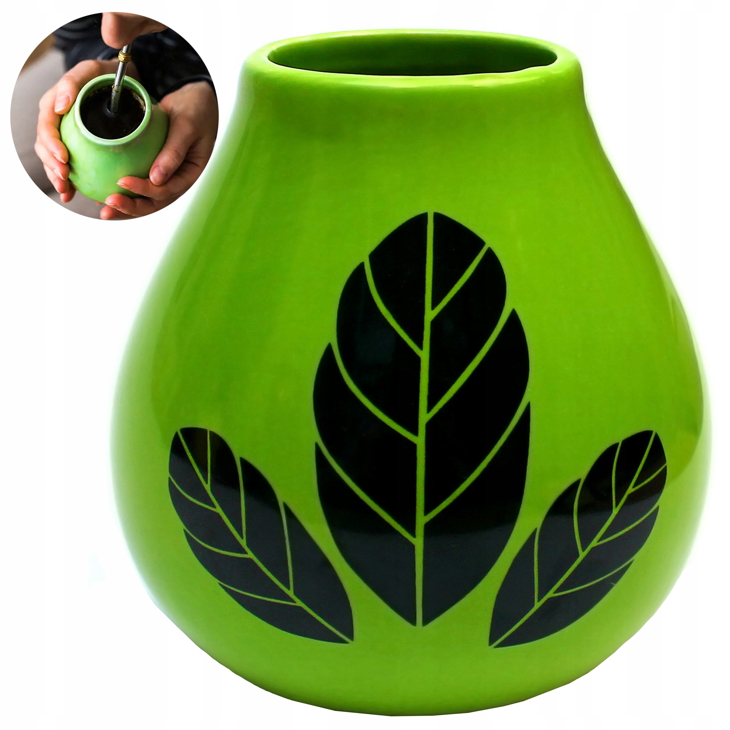 Matero Ceramiczne Hoja — ідеальний вибір для тих, хто цінує як естетику, так і практичні рішення в повсякденному використанні. Ідеально підходить для любителів йерба мате, ентузіастів чаю та людей, які шукають елегантний подарунок.