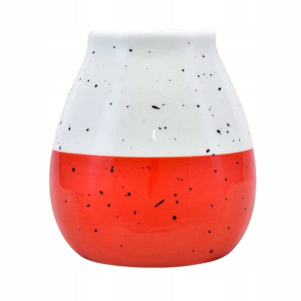 Кабалло керамічна тирема Це стильно до yerba mate з ємністю близько 350 мл . Форма нагадує класичну гарбуз. Засклений всередині і зовні. Закінчивши яскравим кольором, з чорними, нерегулярними плямами та дизайнером, відрізаними внизу - чорним кольором. Matero міцно виготовлений, з високоякісною керамікою . Він стійкий до механічних пошкоджень. Пити Єрбі з такої страви - це чисте задоволення!