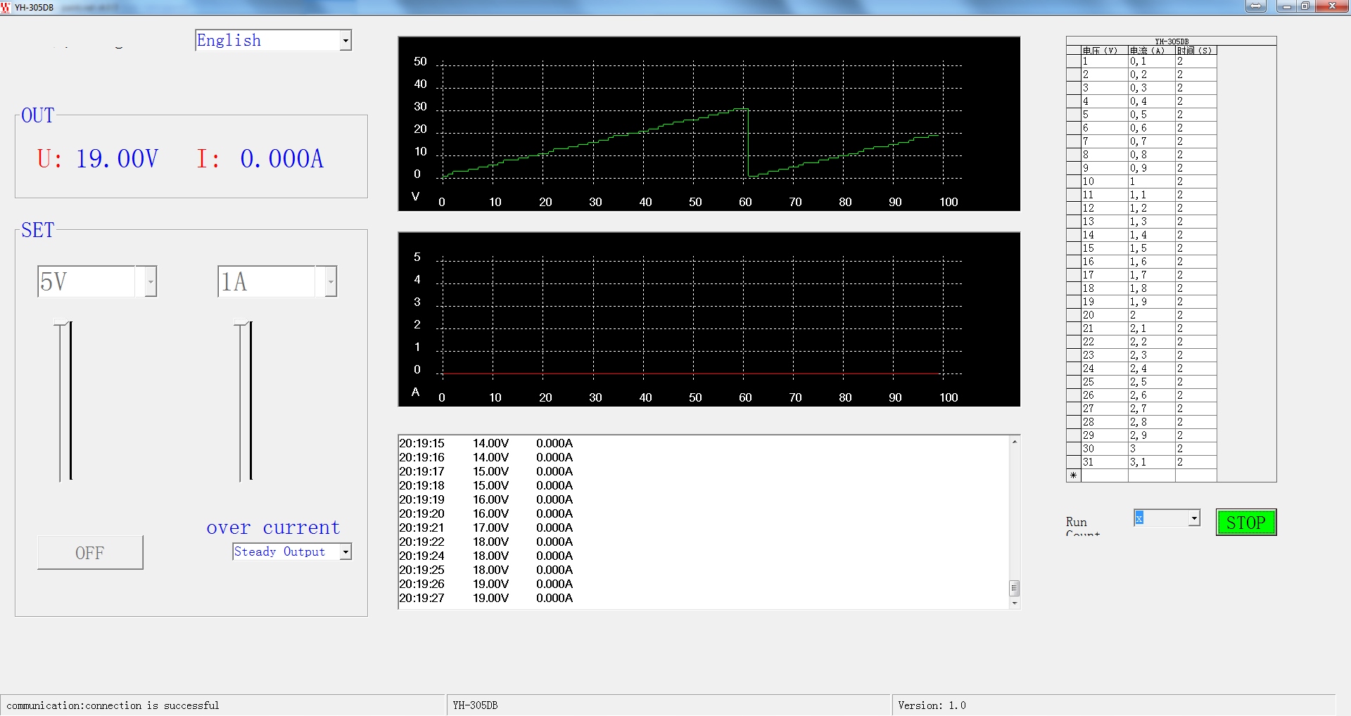 Блок живлення має можливість зв'язку з ПК за допомогою роз'єму RS232 або USB. Програмне забезпечення в наборі.