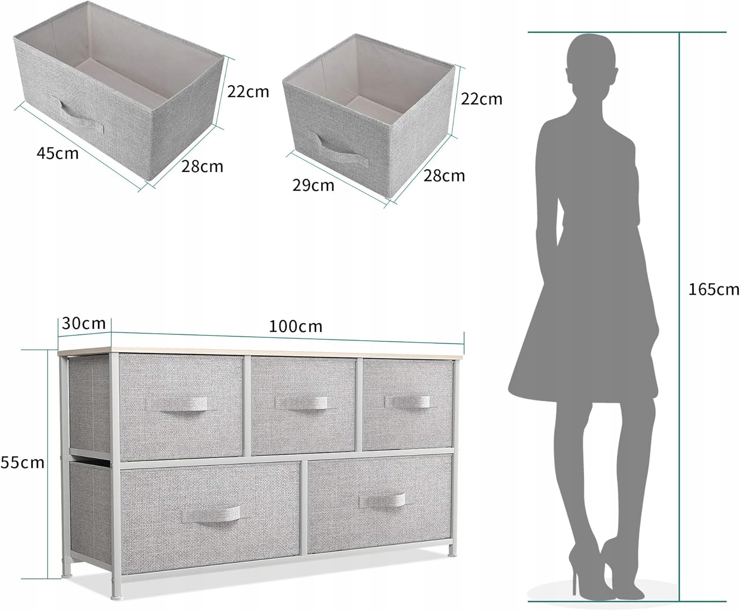 - Високоякісна конструкція - виготовлена з надійної металевої рами та міцного дерев’яного МДФ; 5 знімних і складних ящиків; Легкі витягування дерев’яних ручок допомагають зручно відкритись і закрити ящики; 4 Регульовані пластикові ніжки допомагають захистити підлогу від подряпин.