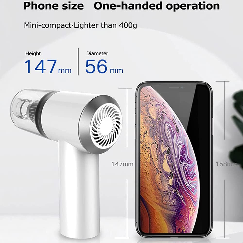5000 PA Потужний автомобільний пилосос Mini Vacuum vacuum cleaner працює на основі технології циклонного пилососа. У цьому бездротовому ручному пилососі використовується надпотужний двигун із високою потужністю всмоктування. Він може досягти найшвидшого та глибокого очищення, легко видаляючи шерсть домашніх тварин, пил, бруд та інші неприємні залишки. Універсальні насадки Щілинний інструмент для збирання сміття у вузьких кутах і місцях Щітка для збирання шерсті домашніх тварин на дивані чи килимку. Ідеальний партнер для вашого автомобіля та вибір на подарунок як добре зроблений ручний пилосос. Ергономічний дизайн і низький рівень шуму Акумуляторний ручний пилосос має ергономічну структуру ручки, яка забезпечує зручне захоплення, тому його не втомлює тривалий час. який майже такого ж розміру, як фен. Завдяки цьому цей ручний бездротовий пилосос можна розмістити в будь-якому місці, яке відповідає вашим щоденним потребам у прибиранні. Повністю портативний, з можливістю швидкого заряджання, використання після повної зарядки та час заряджання становить приблизно 4 години. Бездротовий ручний пилосос був розроблений для використання людиною. Вигнутий дизайн і матові металеві матеріали забезпечують правильний кут і відчуття в руці. Легкий і ергономічний дизайн, тримаючи в руках цей приборкувач, ви можете легко дістатися до різних куточків і щілин. Що входить Є одна вакуумна машина, один USB-зарядний пристрій, дві насадки, один миючий фільтр. Ми прагнемо запропонувати задовільний сервіс кожному клієнту в разі будь-яких проблем. Зверніть увагу, що ви повинні стягнути плату протягом 34 годин після отримання товару
