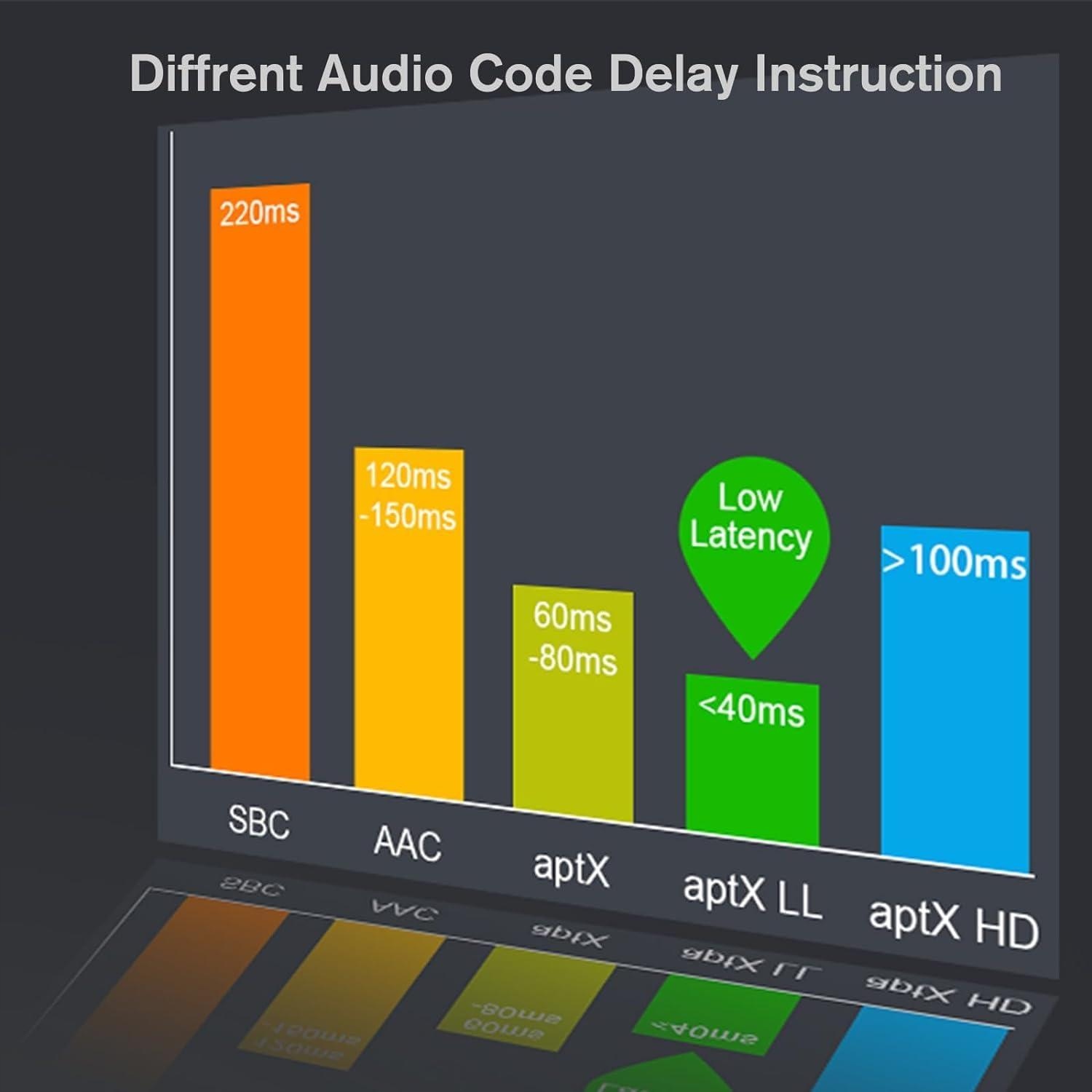 - 【Підтримує низьку затримку AptX, насолоджуйтеся затримкою менше 40 мс】Цей адаптер Bluetooth підтримує режим низької затримки aptX. Якщо ви хочете використовувати функцію 𝐚𝐩𝐭𝐗-𝐋𝐨𝐰 𝐋𝐚𝐭𝐞𝐧𝐜𝐲, ваша гарнітура також має підтримувати aptX-Low Latency. 𝐚𝐩𝐭𝐗-𝐋𝐨𝐰 𝐋𝐚𝐭𝐞𝐧𝐜𝐲 не можна використовувати під час сполучення двох гарнітур Bluetooth одночасно. Ми не рекомендуємо використовувати його з професійним музичним обладнанням. Ми не рекомендуємо підключати його до Airpods Pro/Gen/Max (Airpods може)
