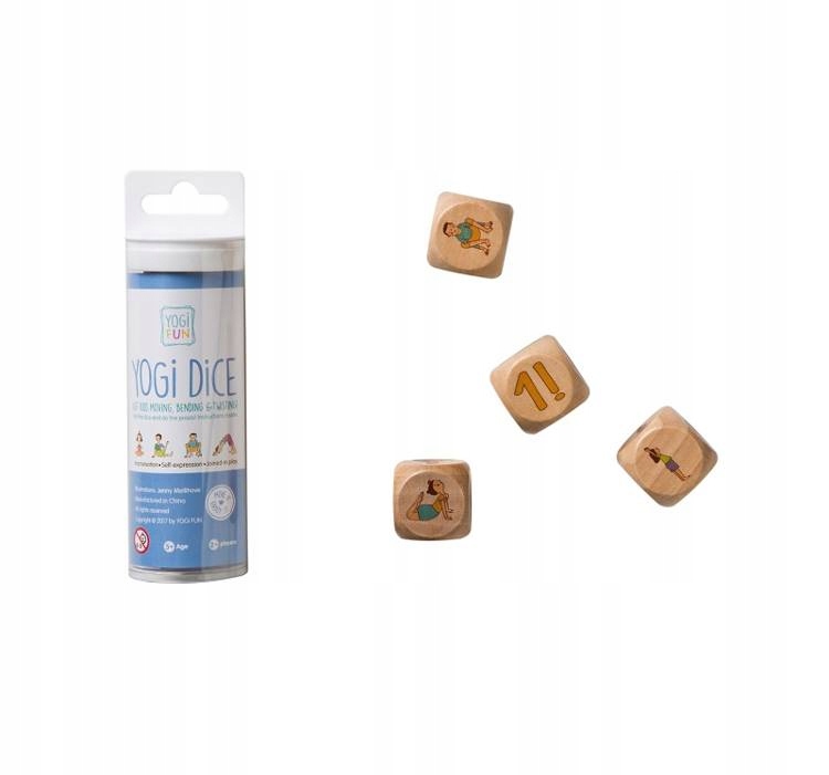 Yoga YOGi Fun Dice Game знайомить дітей із задоволенням від виконання поз і послідовностей йоги. Гравці по черзі кидають усі чотири кубики. Залежно від того, що викинуто на кубику з інструкціями, гравець може виконати одну або всі три викинуті пози та навіть додати власні варіації! Кожен символ на кубику з інструкціями допомагає дітям розвивати такі навички: вибирати, дихати, імпровізувати, мати справу з «хорошою» чи «поганою» увагою, відкривати своє серце друзям і говорити добрі слова.