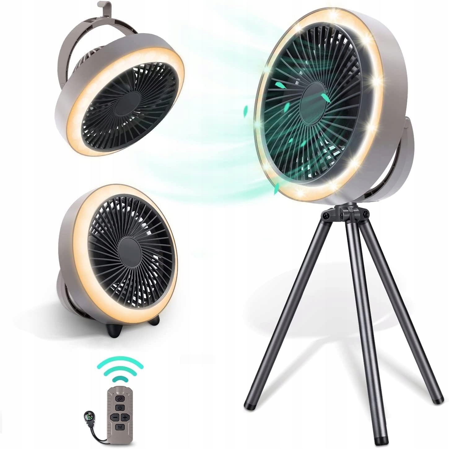 Пульт дистанційного керування та кнопки: натискайте перемикачі на пульті дистанційного керування, щоб переключатися між різними режимами та регулювати яскравість світла, не встаючи, щоб вимкнути вентилятор і світло. Або використовуйте кнопки на вентиляторі для кемпінгу, щоб керувати всіма функціями.