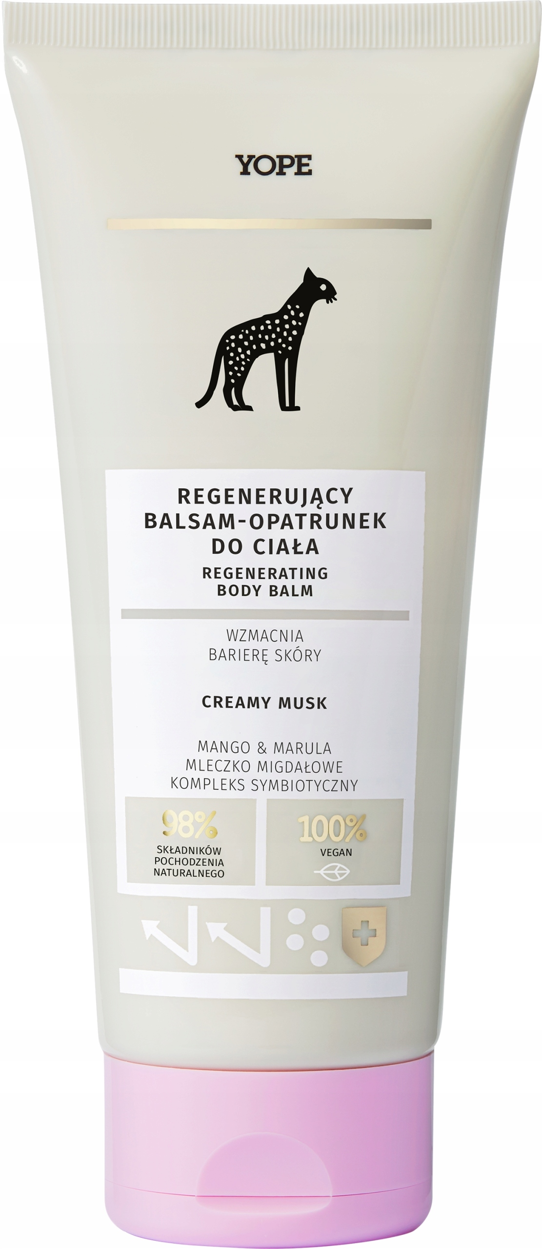 Відновлюючий лосьйон для тіла Yope Creamy Musk, який діє як пов’язка для захисту та зміцнення шкірного бар’єру. Він має рідкокристалічну формулу, призначену для догляду за глибокими шарами шкіри шляхом регенерації бар’єрного шару епідермісу. Пластинчасті структури виділяють активні речовини, які зміцнюють бар'єр. Бальзам природним чином розчиняється в епідермісі, активно підтримуючи регенерацію, відновлюючи комфорт і полегшення.