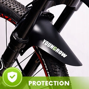 - Крило. Оснастіть свій гірський велосипед нашим переднім крилом для більш чистої, комфортної та безпечної прогулянки з вашою дитиною. Він захищає від бруду, камінців і сміття, які можуть утворитися під час активності, а також запобігає бризкам бризок на ваш одяг і обличчя. Цей аксесуар простий у встановленні та необхідний для всіх подорожей на велосипеді з дитиною.