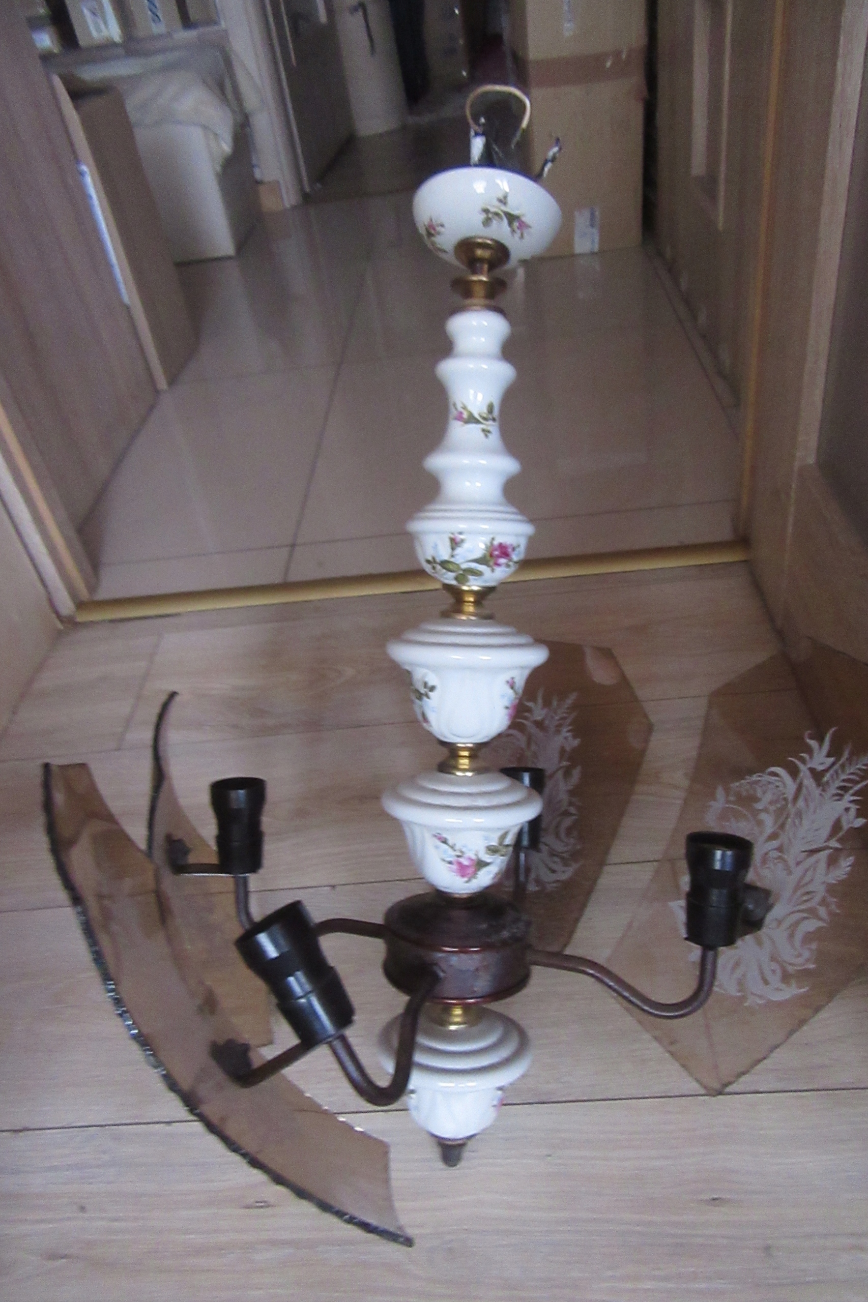 ŻYRANDOL PORCELANA Z KLOSZAMI