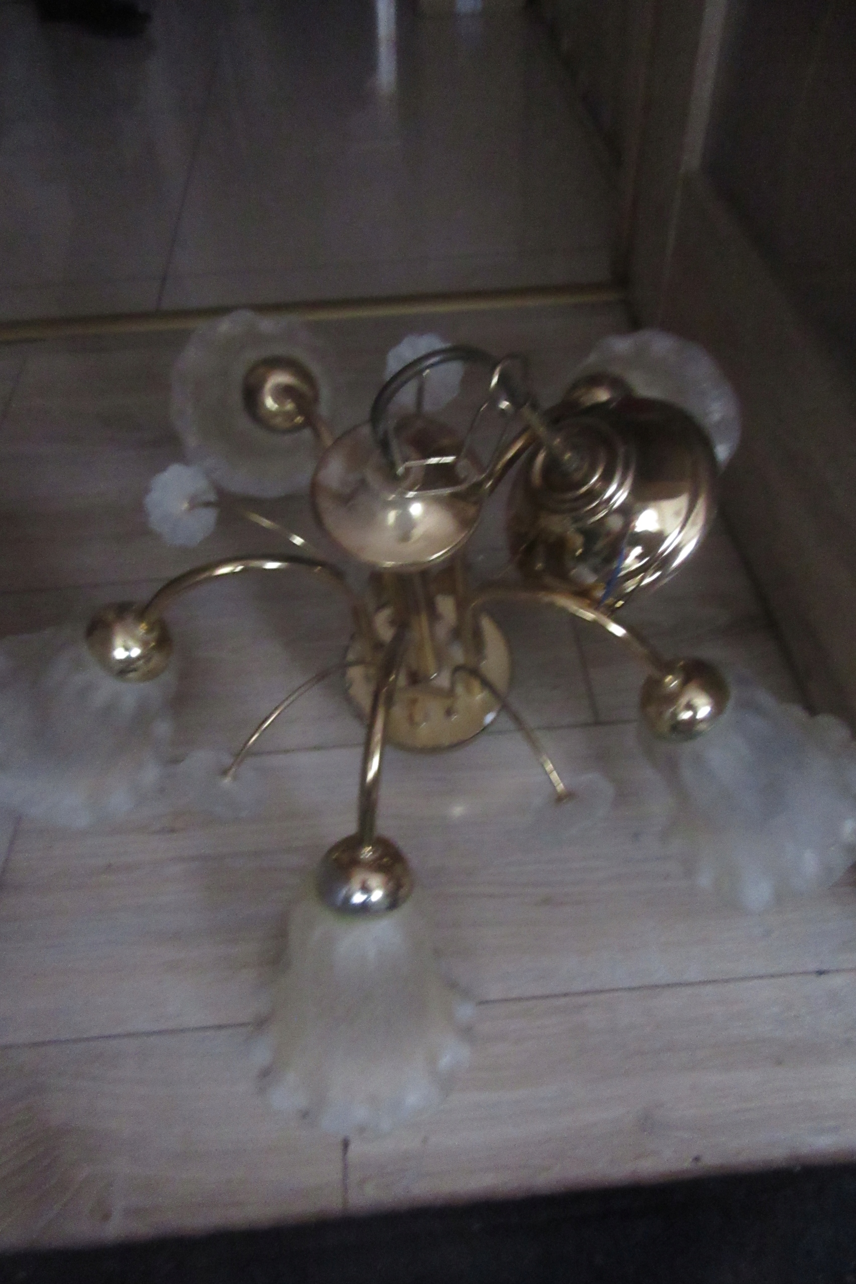 ŻYRANDOL POZŁACANY Z PIĘCIOMA KLOSZAMI