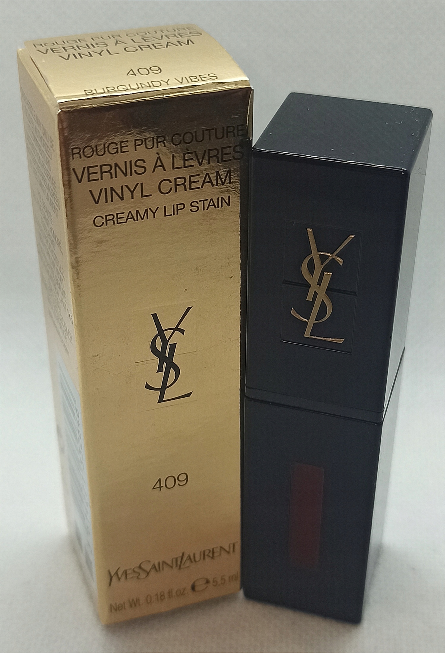 YSL ROUGE PUR COUTURE VERNIS A LEVERS VINYL CREAM 409 BURGUNDY VIBES 5,5 МЛ