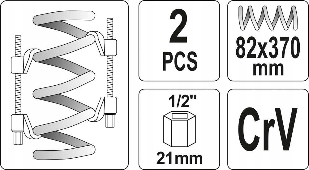 Професійні знімачі пружин довжиною 370 мм призначені для безпечного та зручного монтажу та демонтажу пружин, напр. в колонках Макферсона. Необхідний в кожній автомайстерні. Робота безпечна завдяки спеціально профільованим двоплечим ручкам.