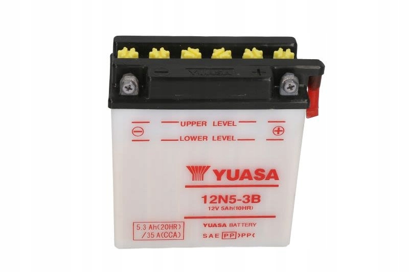 Свинцева/стартерна батарея YUASA 12 В, 5,3 А·год, 35 A P+ Технічне обслуговування 120x60x130 мм, без сухої зарядки електроліт необхідна кількість електроліту 0,4л 12N5-3B підходить: KAWASAKI AR 125-650 1968-1991
