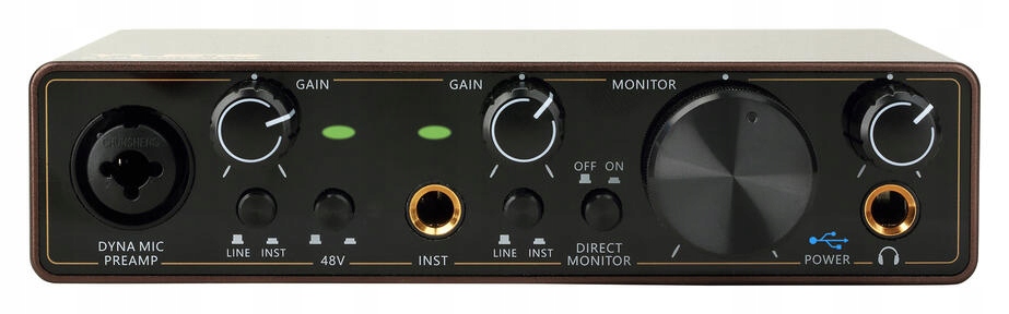 Аудіоінтерфейс Yuer 2i2 – це практичний і економічний аудіоінтерфейс для домашньої студії. Підходить для домашнього запису, подкастингу та багатьох інших програм. За допомогою мікрофонів можна записувати такі інструменти, як гітара та бас, лінійні сигнали, а також мову та вокал. Інтерфейс підтримує запис за допомогою динамічних мікрофонів, а також конденсаторних мікрофонів, оскільки він має перемикання фантомного живлення (48 В). Аудіоінтерфейс Yuer 2i2 має 2 канали, які можна використовувати незалежно один від одного. Він також пропонує частоту дискретизації до 192 кГц, 24 біти та динамічний діапазон 100 дБ.