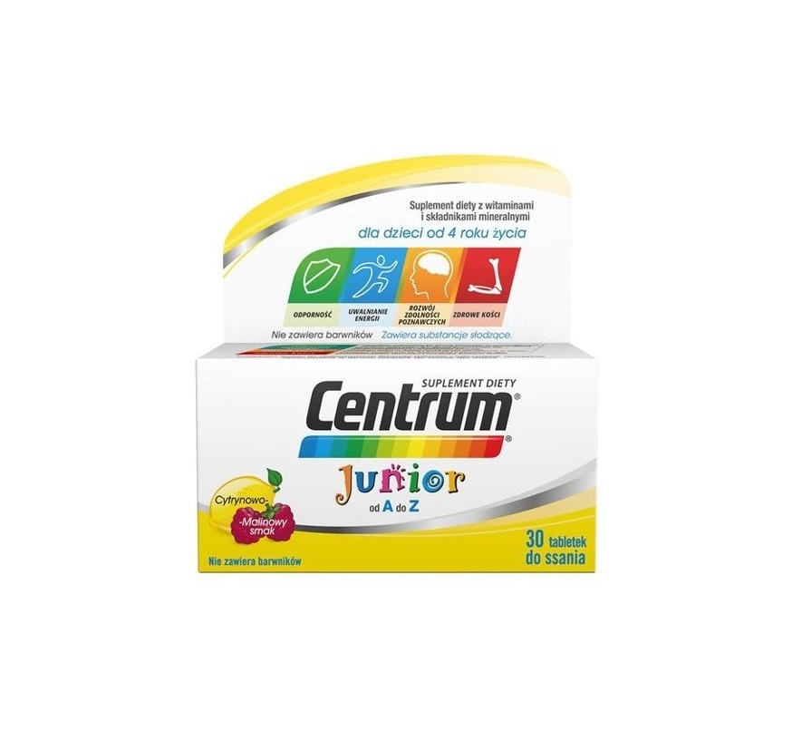 Centrum Junior від А до Я містить залізо, яке допомагає підтримувати правильні когнітивні функції. Препарат також містить вітамін D, важливий для правильного росту та розвитку дитячих кісток, який сприяє належній роботі імунної системи у дітей.