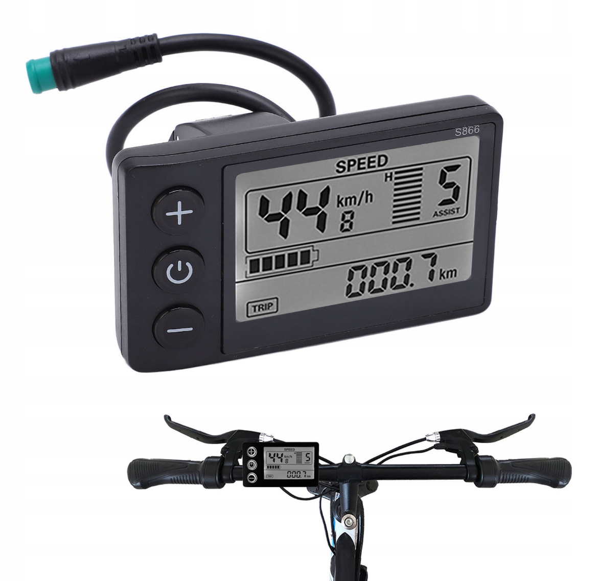 Дисплей Yunir S866 надає точну інформацію, необхідну для ефективного водіння. Пристрій дозволяє контролювати швидкість, рівень заряду батареї та режим допомоги двигуну, що сприяє оптимальному управлінню енергією.